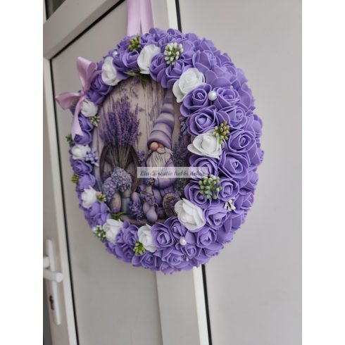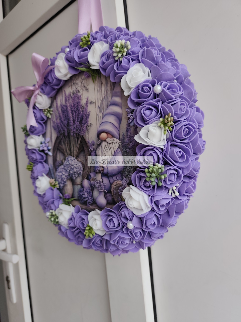Lila színvilágú ajtódísz kb 32 cm átmèrőjű