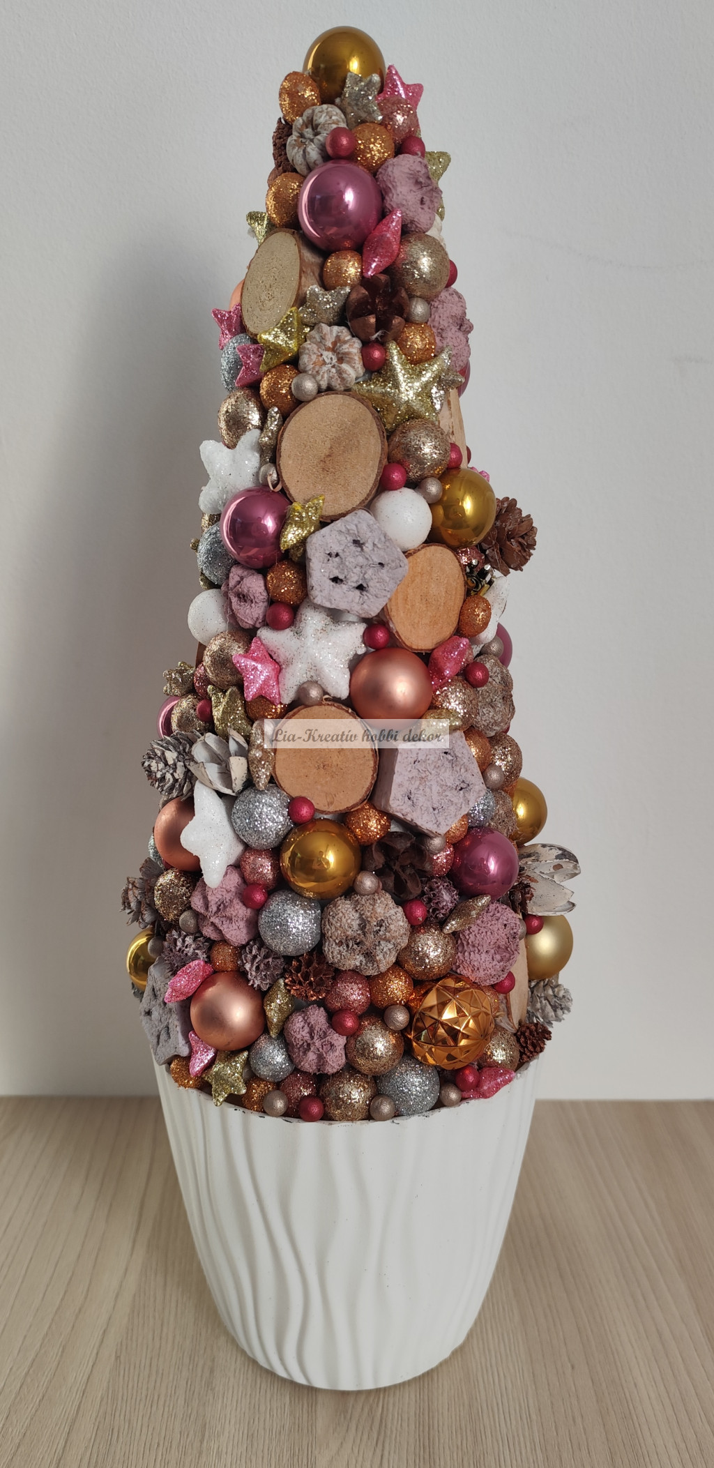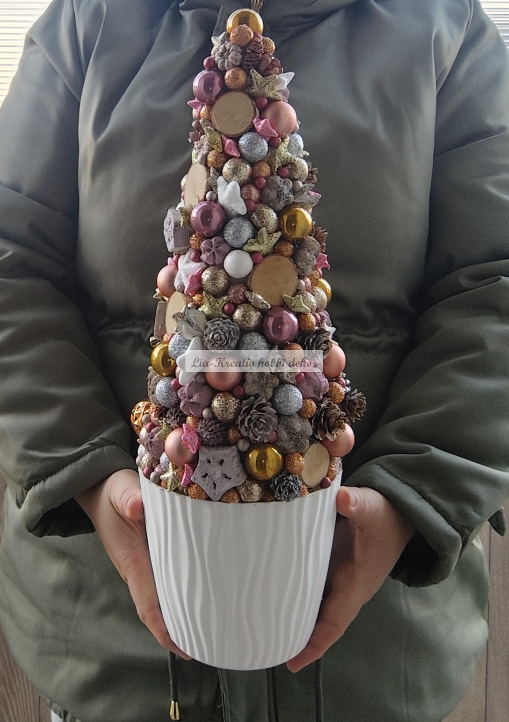 44 cm magas karácsonyfa dekorokból ès termèsekből