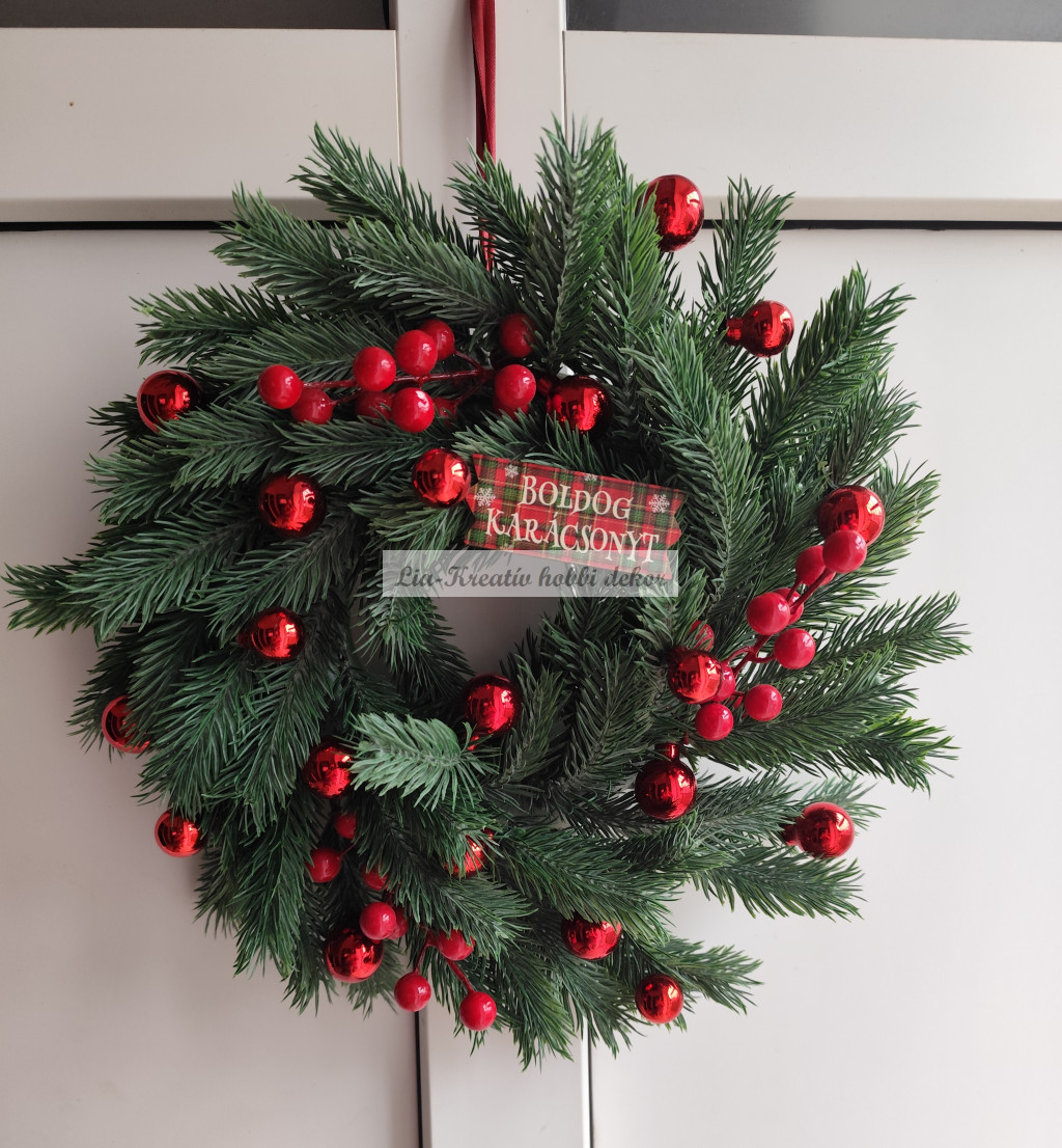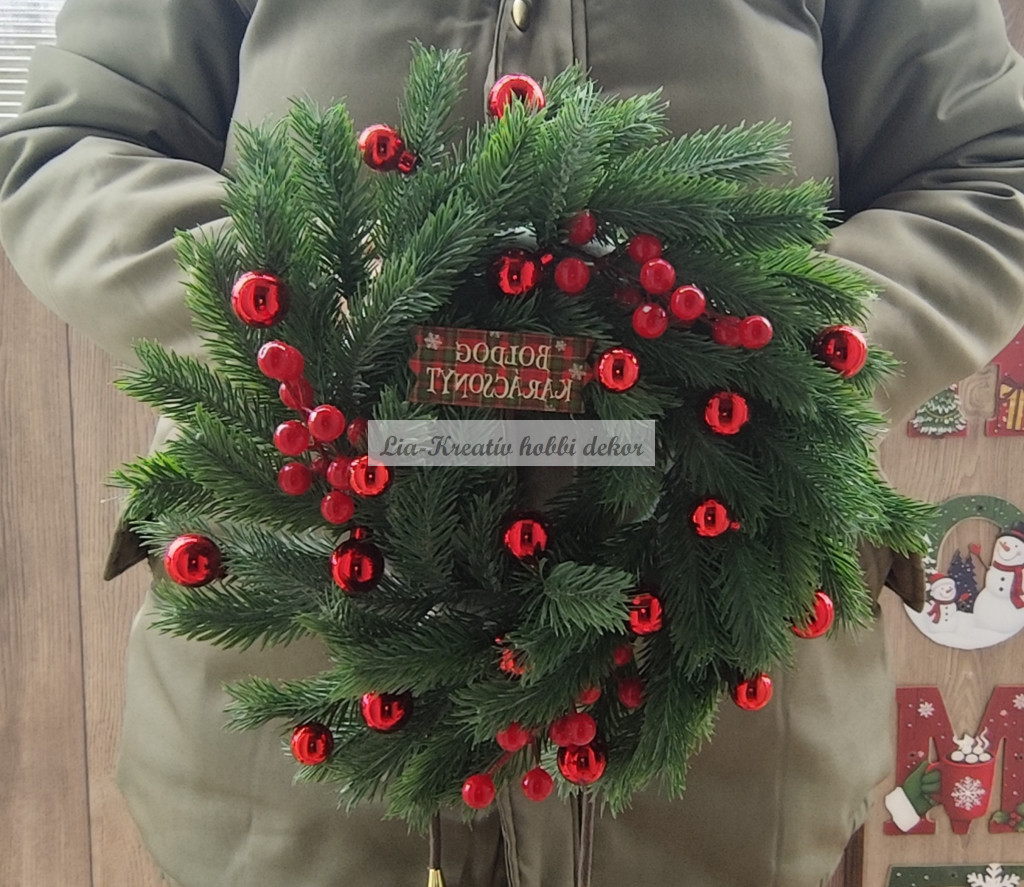 Karácsonyi ajtódísz 3D levelű műfenyő