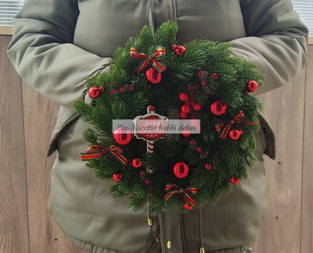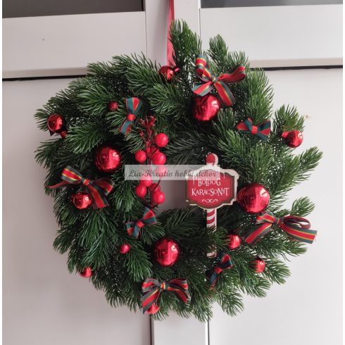 Karácsonyi ajtódísz 3D levelű műfenyő